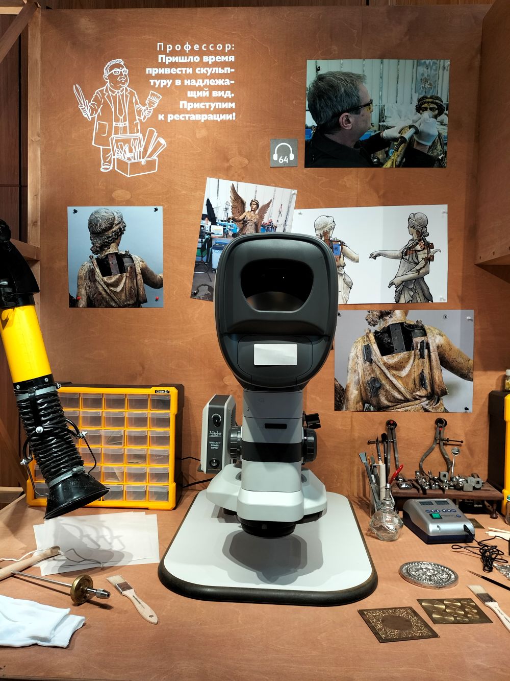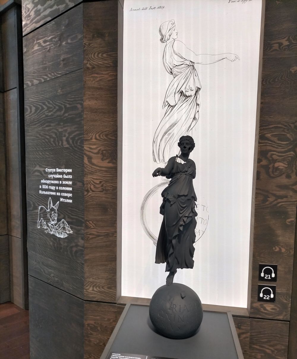 В Главном штабе Эрмитажа открылась выставка «Музейный детектив. Иммерсивное расследование», посвященный исследованию античной статуи Виктории Кальватоне.