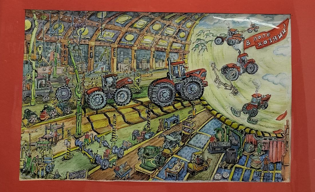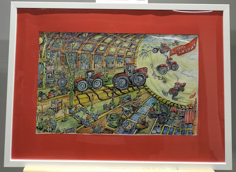 Замечательные примеры наивного искусства – незамысловатый пейзаж с магазинчиками и эпический рисунок как изображение целой вселенной сборочного конвейера.