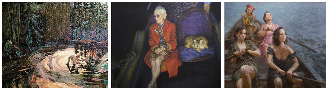 На заставке: фрагменты мозаики У. Провалова «Ночь на Ивана Купалу» и картин М. Королькова Time Is on My Side и А. Шатилова «На всех!»