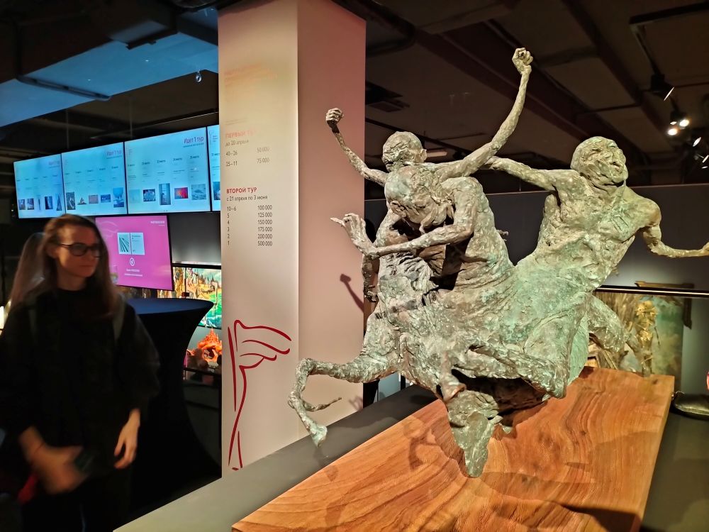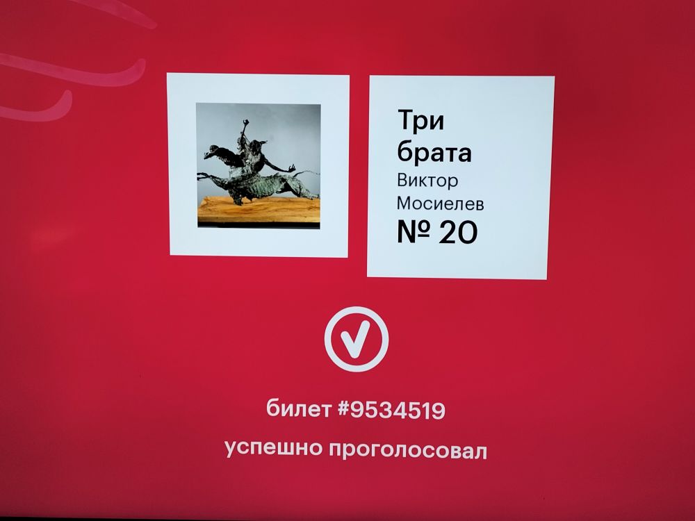 Во время первого тура по пятницам будут проводится встречи с авторами (см. расписание). Итоги первого часа голосования мало о чем говорят, но лидерство скульптуры радует.