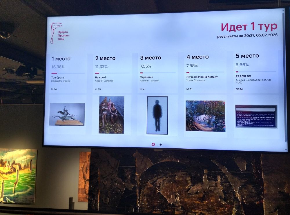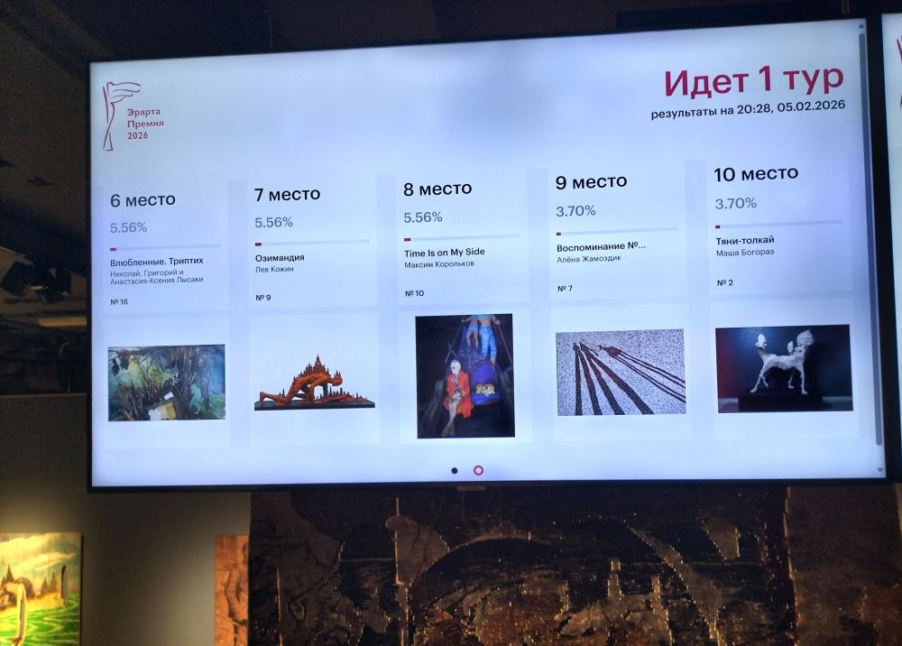 В музее Эрарта состоялось главное событие первой половины-2026. Открылся четвертый сезон «Эрарта-премии». 40 работ, отобранных экспертами музея из более чем 2 тысяч заявок, поборются за голоса зрительского жюри. Первый тур завершится 20 апреля: десять авторов, собравших наибольшее количество голосов, проходят во второй тур, где голосования начнется с нуля.