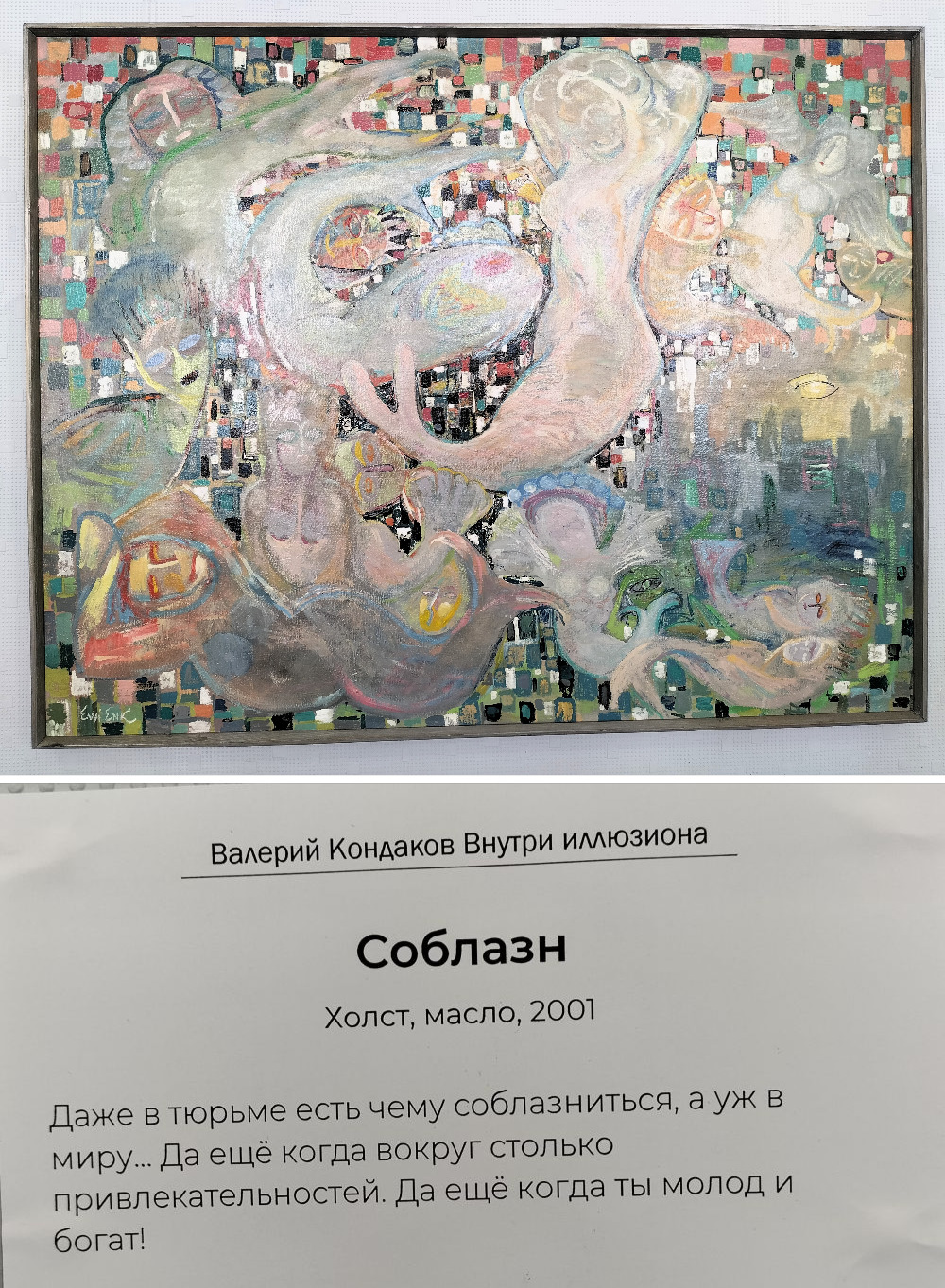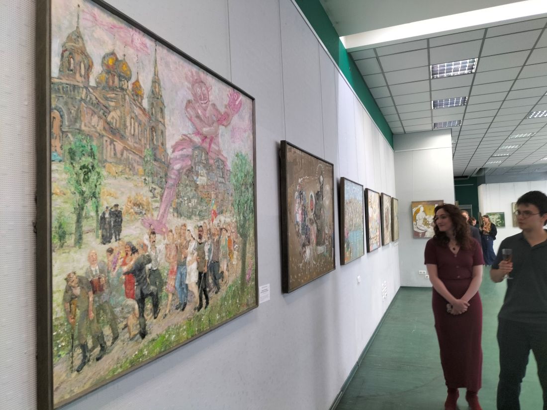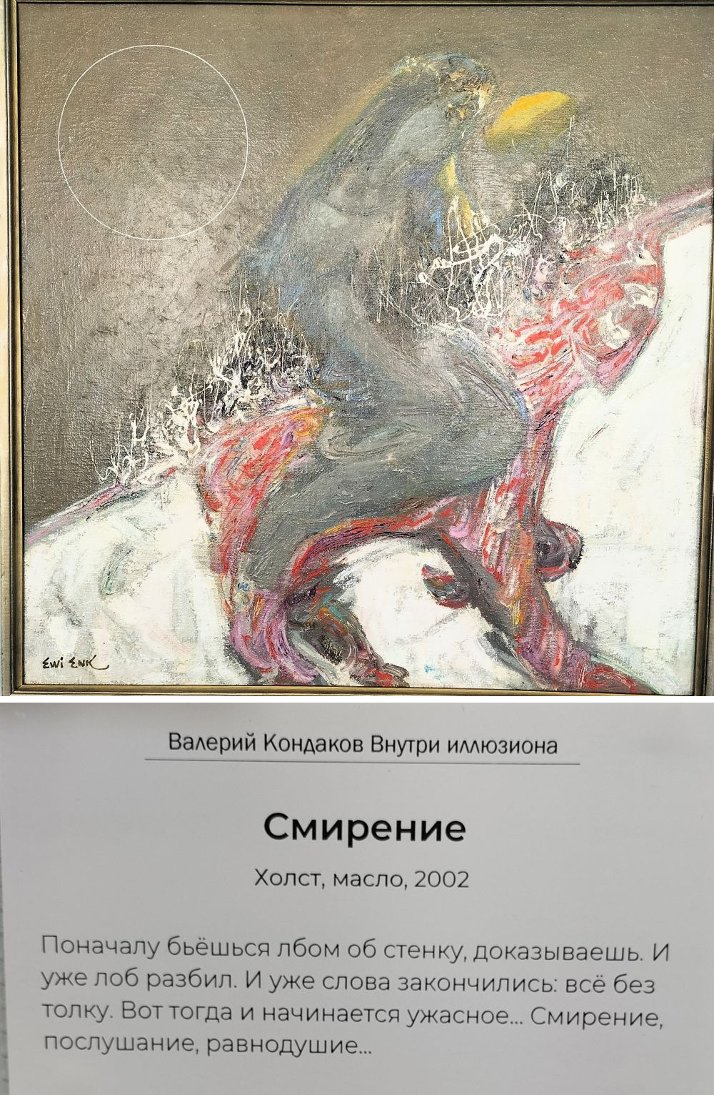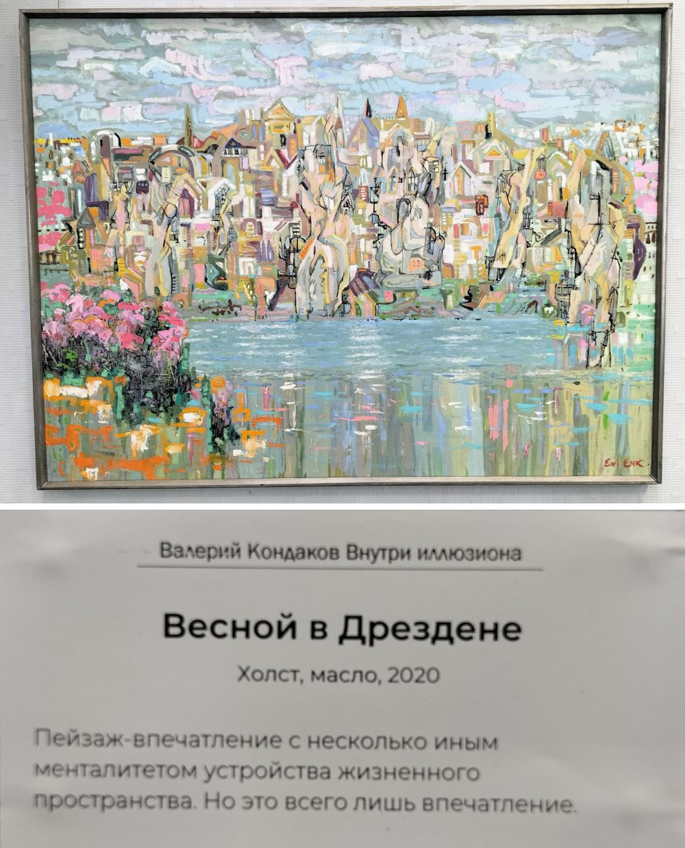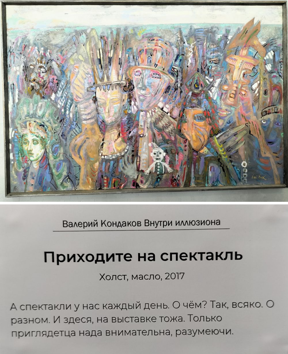 К сожалению, по болезни Валерий Павлович не смог присутствовать на вернисаже. Но все его полотна снабжены выразительными авторскими комментариями.