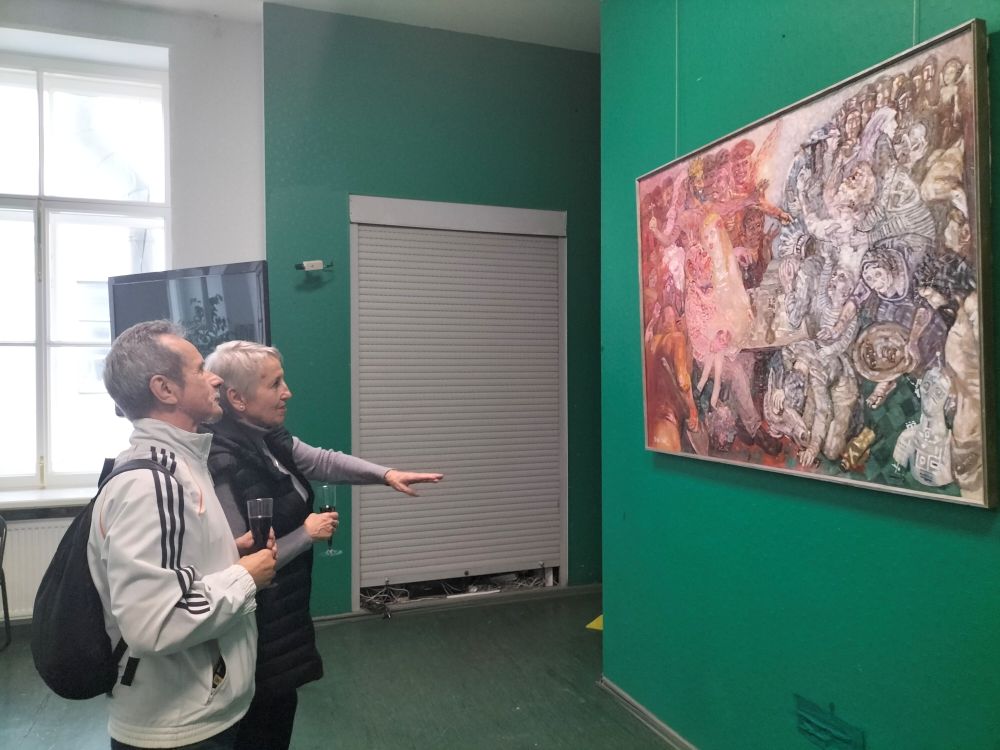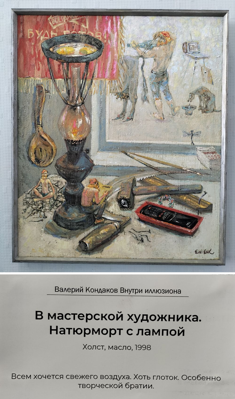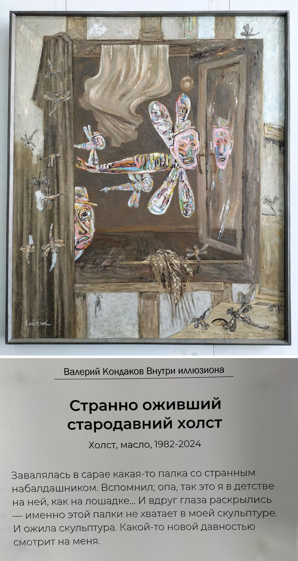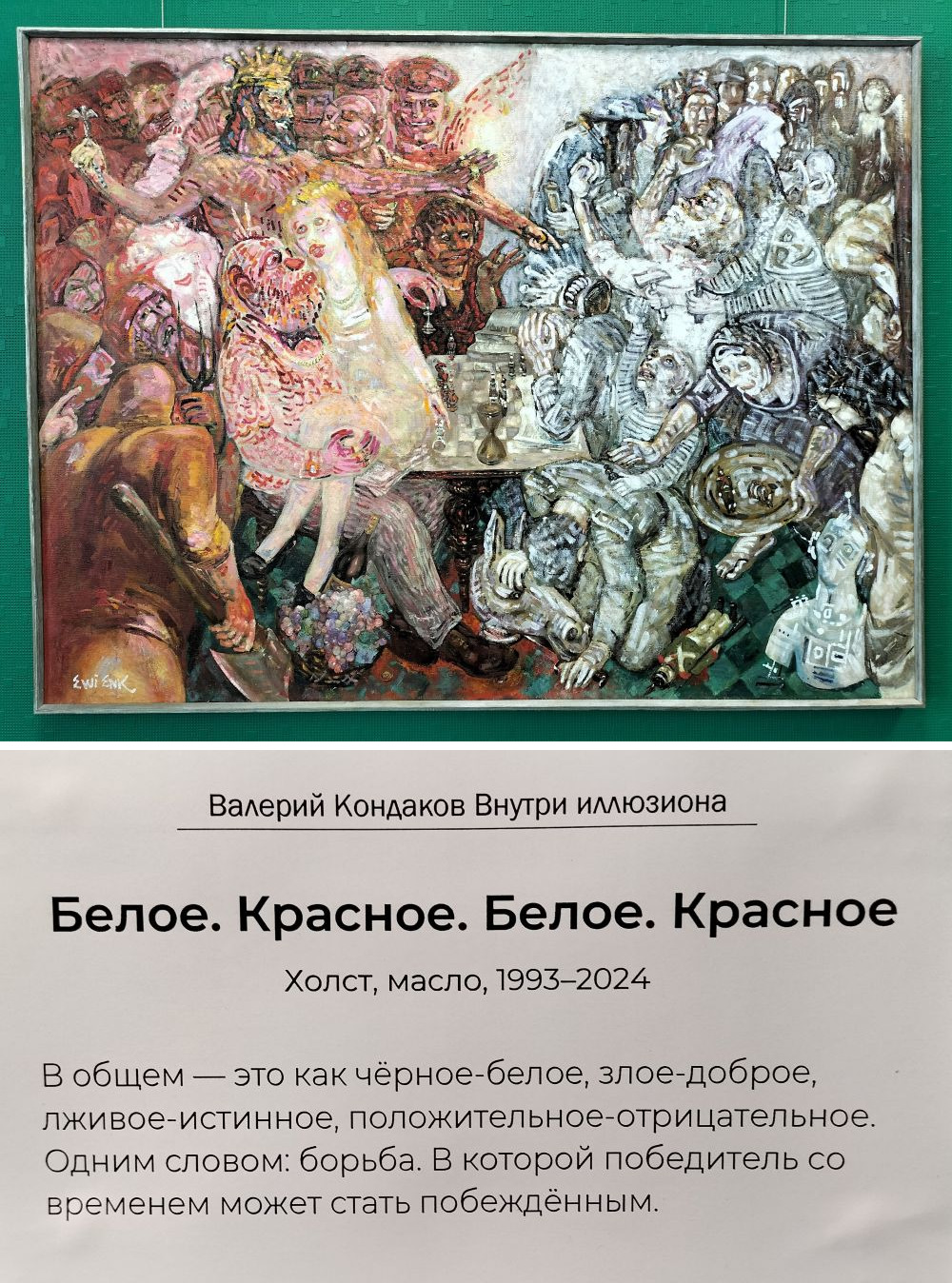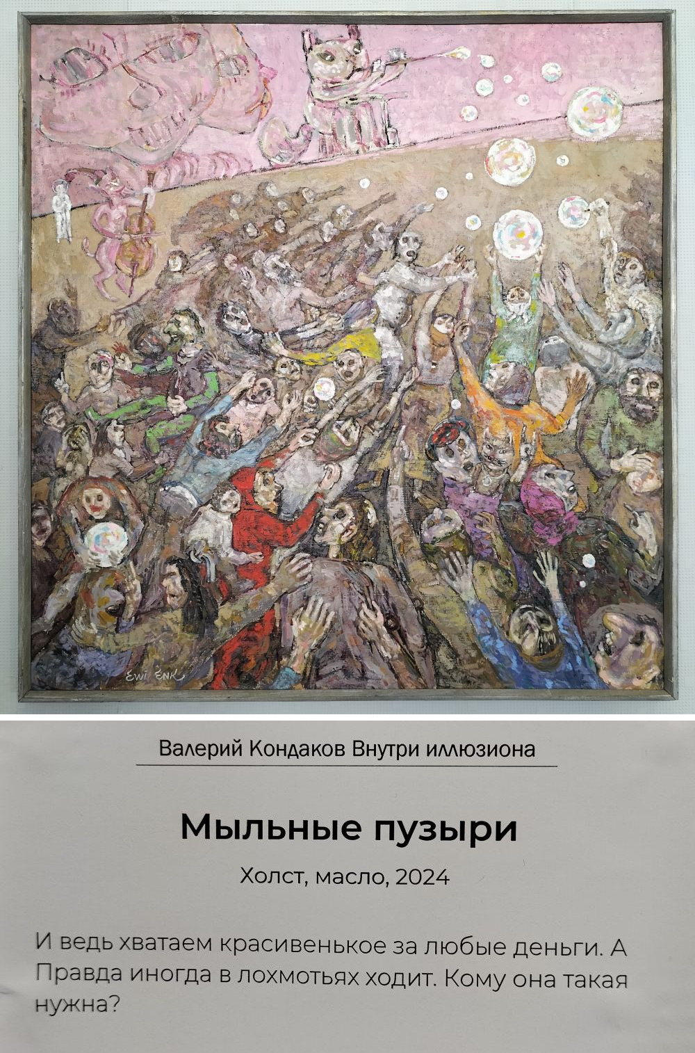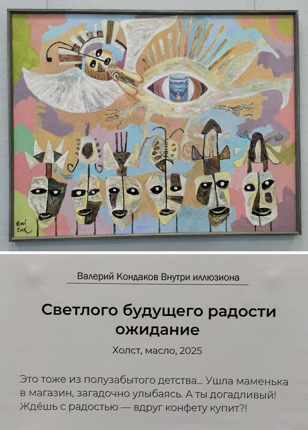 К сожалению, по болезни Валерий Павлович не смог присутствовать на вернисаже. Но все его полотна снабжены выразительными авторскими комментариями.