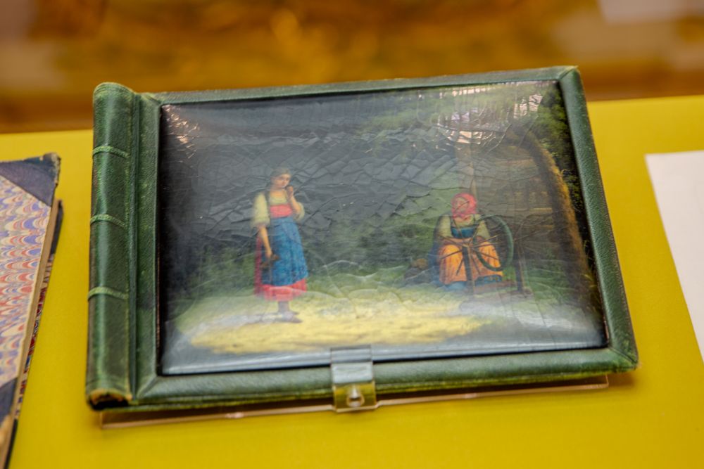 Среди экспонатов – памятный знак с аутентичной фотографией Николая II и Александра Федоровны; веера конца XVIII, XIX и начала XX века; предметы быта – портсигар, визитница, рамка для фотографий и другие артефакты; куклы начала ХХ века, в том числе Bèbè Olga; вазы, выполненные на английской фабрике Веджвуда и Датской королевской фарфоровой мануфактуре; книги Георгия Лукомского, акварель Александры Шнейдер.