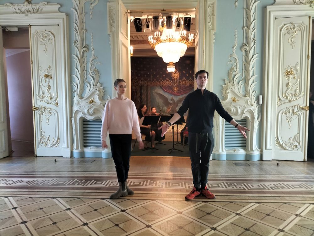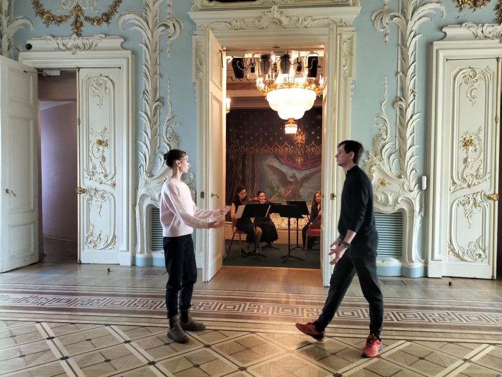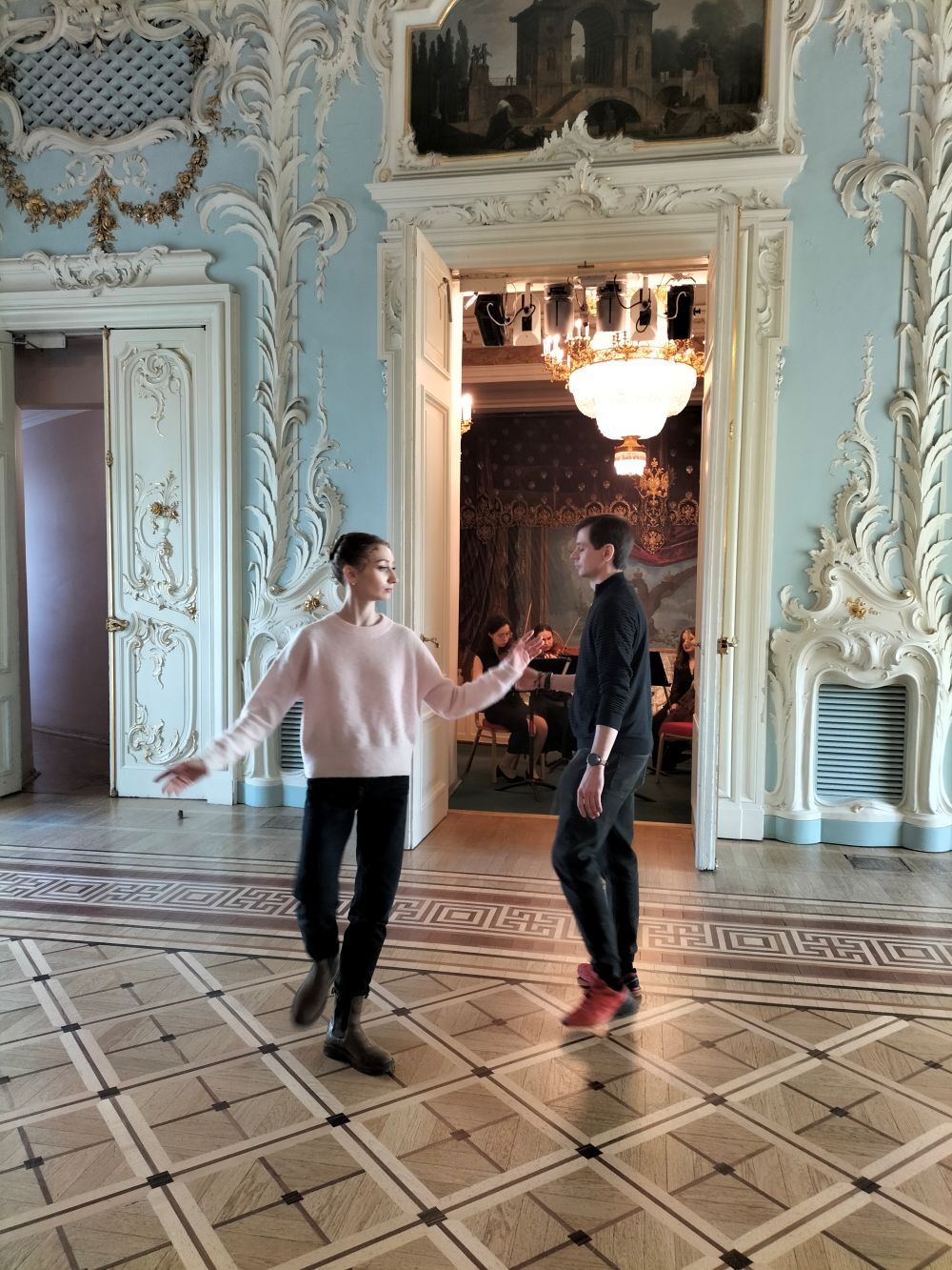 Выставка действует по 26 апреля. Вернисаж сопровождался танцами XVIII века. Репетиция всегда интереснее.