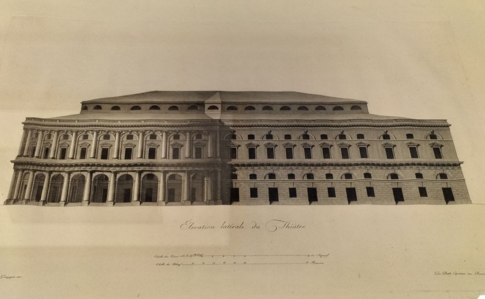 Джованни Баттиста Чиприани по рисунку Гонзага. Боковой фасад театра. 1804 год.