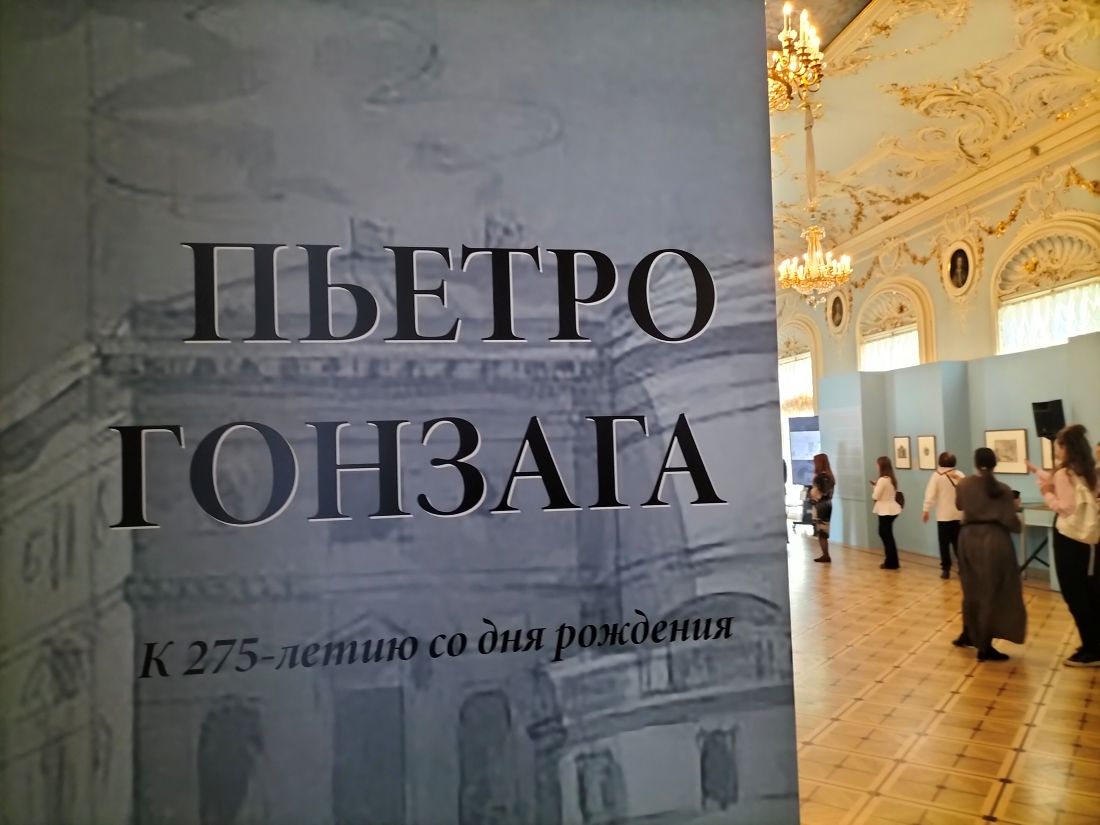 Впервые показан гравированный увраж с неосуществленным проектом театра в саду Михайловского замка. Дополняют экспозицию теоретические трактаты «Предуведомление моему начальнику, или надлежащее разъяснение театрального декоратора Пьетро Готтардо Гонзага о сущности его профессии» и «Музыка для глаз и театральная оптика», а также либретто к спектаклям, которые были оформлены Гонзагой.