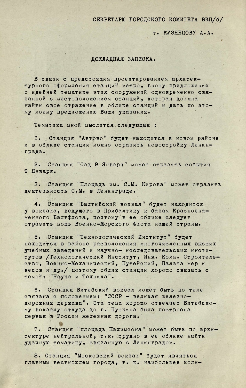 - Список архитекторов, рекомендуемых для участия в разработке проектов архитектурного оформления станций, 4 марта 1941 года, второй лист.