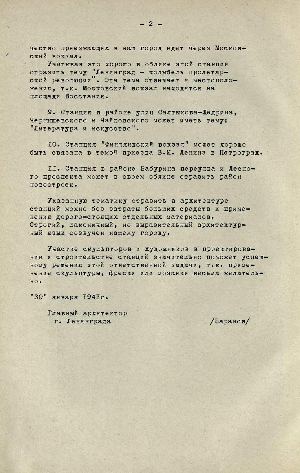 - Докладная записка Баранова, 30 января 1941 года.