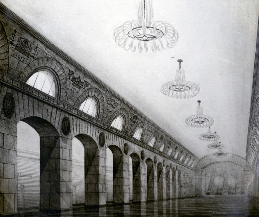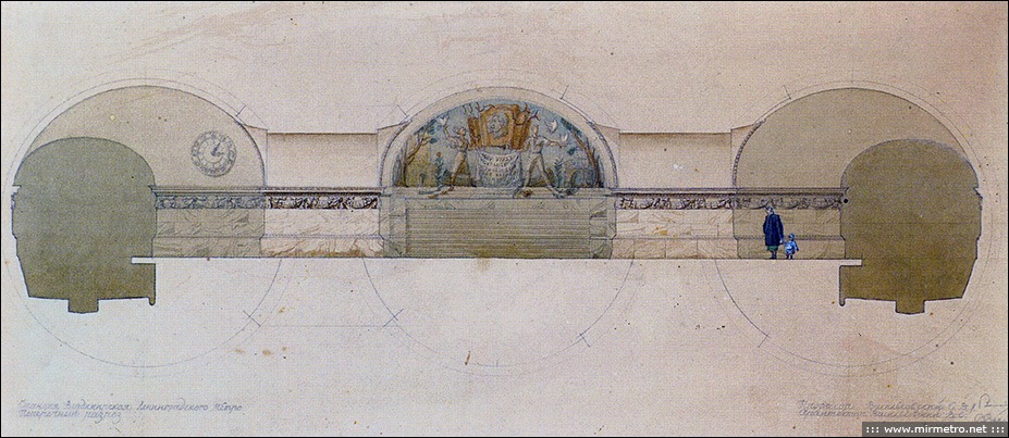 - Конкурсный проект станции “Балтийская” архитектора А.И.Прибульского. Из архива РАХ