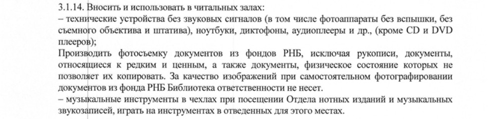 3) Спор идет по поводу пункта 3.1.14 Правил, в котором написано, на что читатель РНБ имеет право: