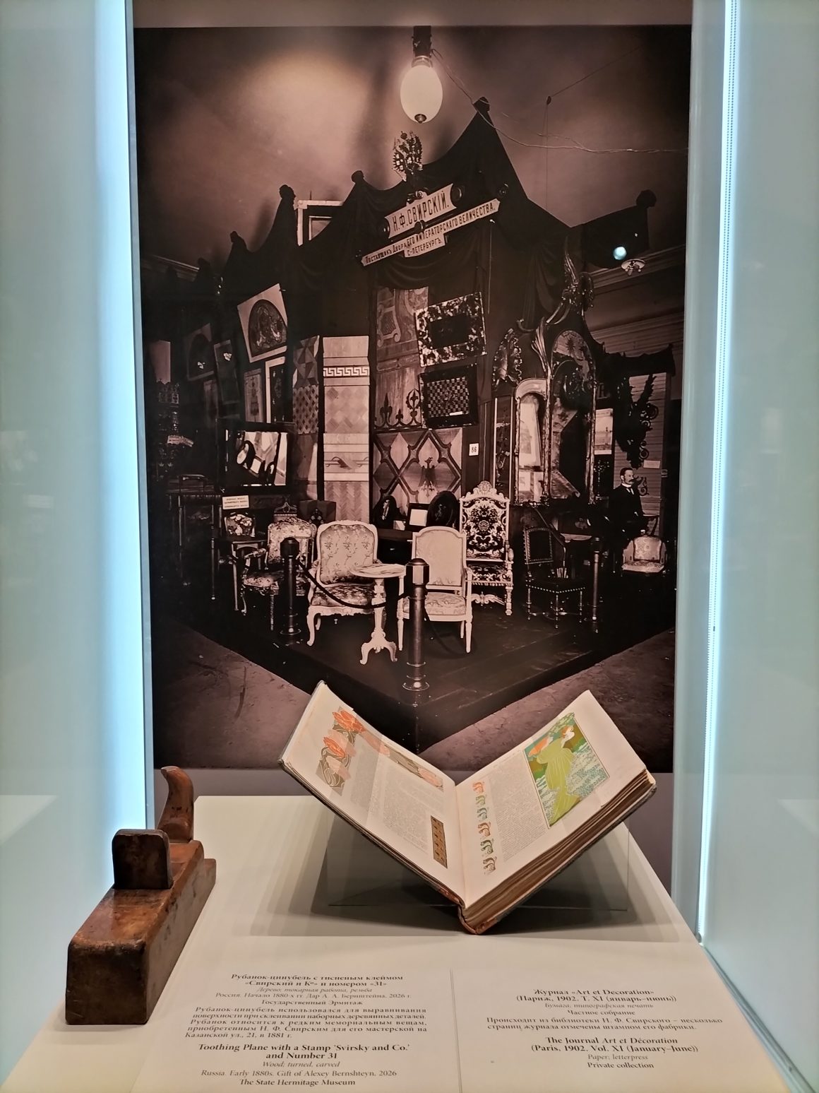 К выставке ее куратор Наталья Гусева, заместитель заведующего Отделом истории русской культуры Эрмитажа, выпустила 300-страничную книгу о Свирском. На его фабрике производили мебель в технике «маркетри» (мозаичные наборы из дерева) в «русском стиле», любимом у Александра III. В начале ХХ века пришла мода на модерн, и фирма Свирского угасла.