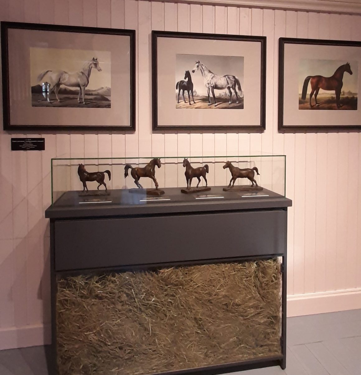 В павильоне представлены около десяти бронзовых скульптур лошадей, которые имеют прямое отношение к Пенсионерской конюшне, работы скульптора-анималиста Иосифа Ивановича Юшкова (1788–1849 гг.). Скульптуры выполнены в середине XIX века, имеют надписи на французском языке с указанием авторства и кличек лошадей.