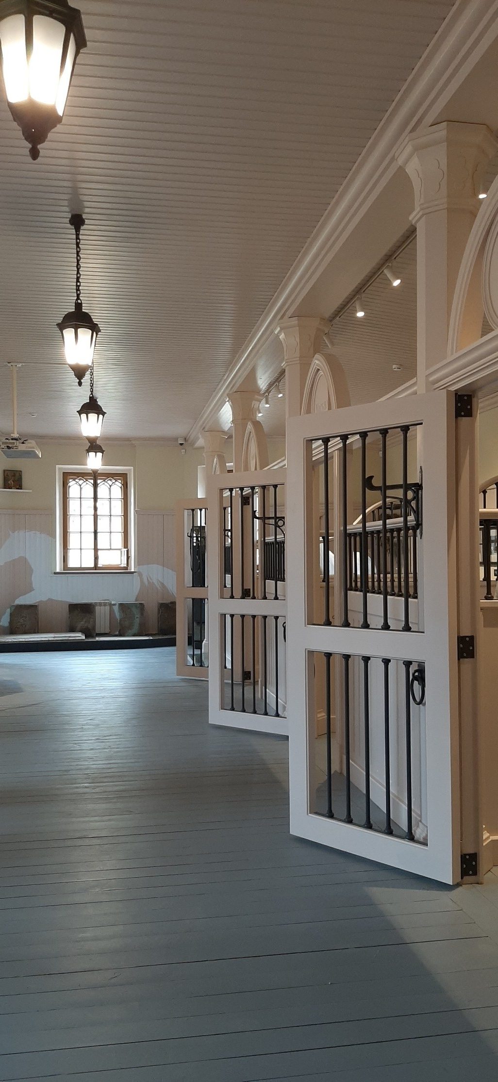 На первом этаже павильона реконструированы четыре стойла. Изначально их было восемь. По мере увеличения поголовья лошадей пенсионного возраста стойла достраивались.