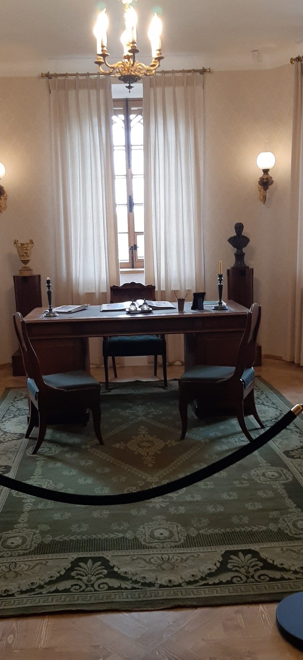 В одном из залов второго этажа воссоздана комната смотрителя. Мебель для нее сделана из красного дерева, а сама комната оформлена в зеленых тонах. Это красиво.