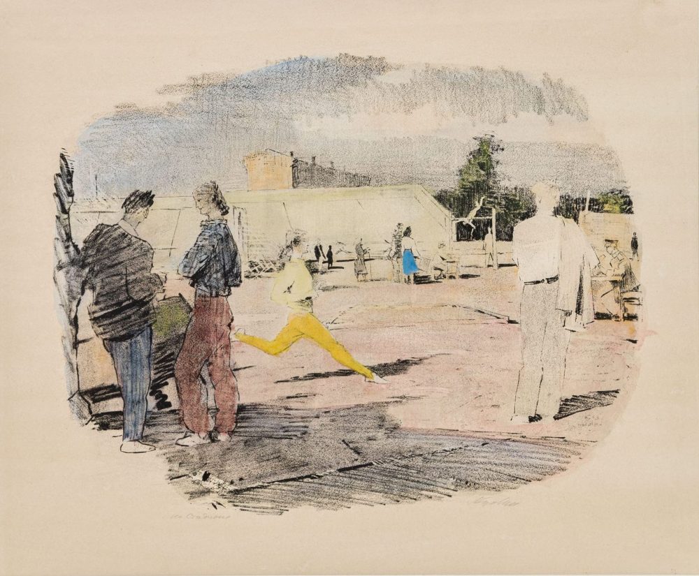 • Ю. Коровин. На стадионе. 1950-е годы. Бумага, литография