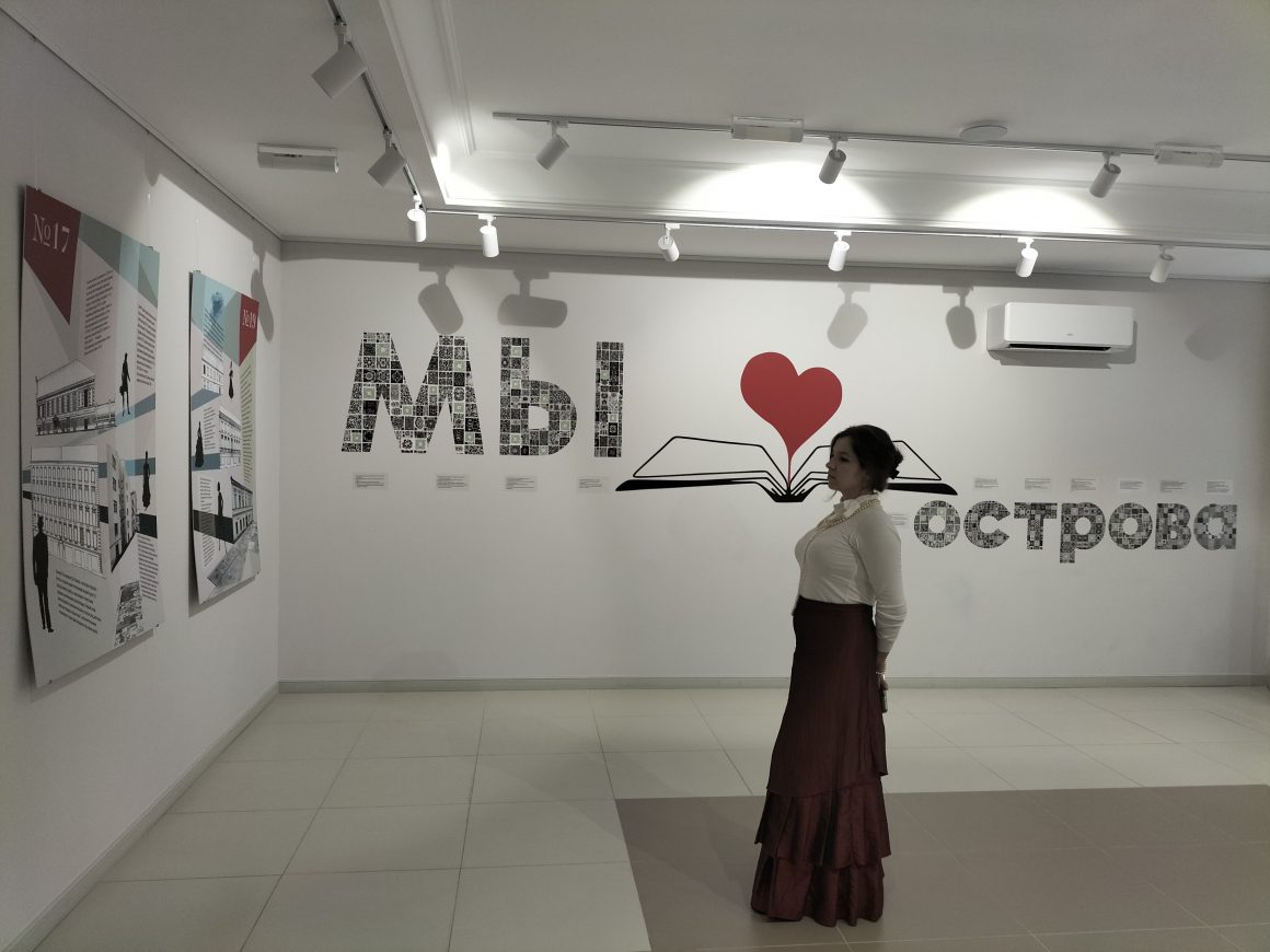 Рядом выставочный зал, где примерно на месяц открыта интерактивная выставка «Мы – сердце острова». Там рассказано о знаменитых василеостровцах и работе библиотеки в годы блокады.